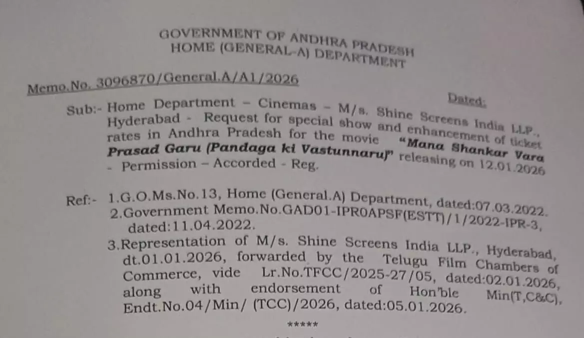 The Andhra Pradesh government has granted permission for premiere shows of Mana Shankara Varaprasad Garu, starring Chiranjeevi. The ticket price for this special show has been fixed at ₹500. At the same time, orders have been issued allowing an increase in ticket prices for a period of 10 days starting from January 12. The government stated in its memo that the special show can be screened on January 11 between 8 pm and 10 pm. For this film, permission has been given to increase ticket prices by ₹100 in single screens and ₹125 in multiplexes. The film has generated good buzz among audiences.
