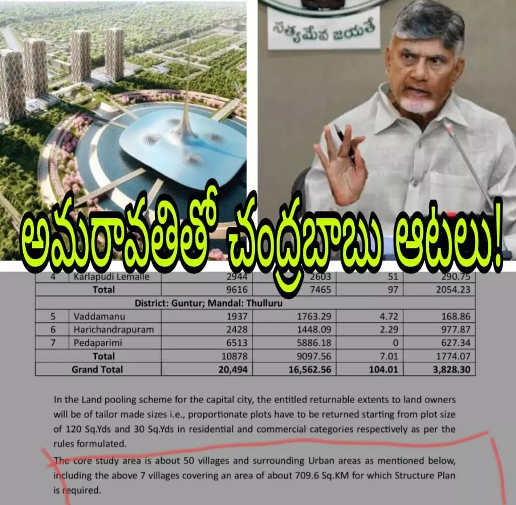 ఈ తరుణంలో ఆంధ్ర ప్రదేశ్ ప్రభుత్వం...సిఆర్డీఏ అమరావతి విస్తరణ ప్రాజెక్ట్ కోసం మాస్టర్ ప్లాన్ సిద్ధం చేయించేందుకు రంగంలోకి దిగింది. దీని కోసం కన్సల్టెంట్స్ ను ఆహ్వానిస్తూ ఇటీవల నోటిఫికేషన్ జారీ చేసింది. ఇక్కడ విచిత్రం ఏమిటి అంటే ఆంధ్ర ప్రదేశ్ రాజధాని మొదటి దశ మాస్టర్ ప్లాన్ మొత్తం 217 చదరపు కిలోమీటర్ల పరిధిలో ఉంది. అంటే ఈ మొత్తం ఎకరాల్లో చూసుకుంటే 53621 ఎకరాలు. ఇప్పుడు విచిత్రంగా ..అమరావతి విస్తరణ కోసం అంటూ ఏకంగా 709.6 చదరపు కిలోమీటర్ల మేర మాస్టర్ ప్లాన్ సిద్ధం చేయించుతున్నారు. అంటే ఫస్ట్ ఫేస్ కేవలం 217 చదరపు కిలోమీటర్ల మేర మాస్టర్ ప్లాన్ సిద్ధం చేయించితే ...విస్తరణ కోసం ఇప్పుడు ఏకంగా 709 చదరపు కిలోమీటర్ల మేర మాస్టర్ ప్లాన్ అని చెప్పటం పెద్ద చర్చనీయాంశగా మారింది. ఇది మొత్తం 50 గ్రామాలు...1.75 లక్షల ఎకరాలు కవర్ అయ్యేలా ఉంటుంది.