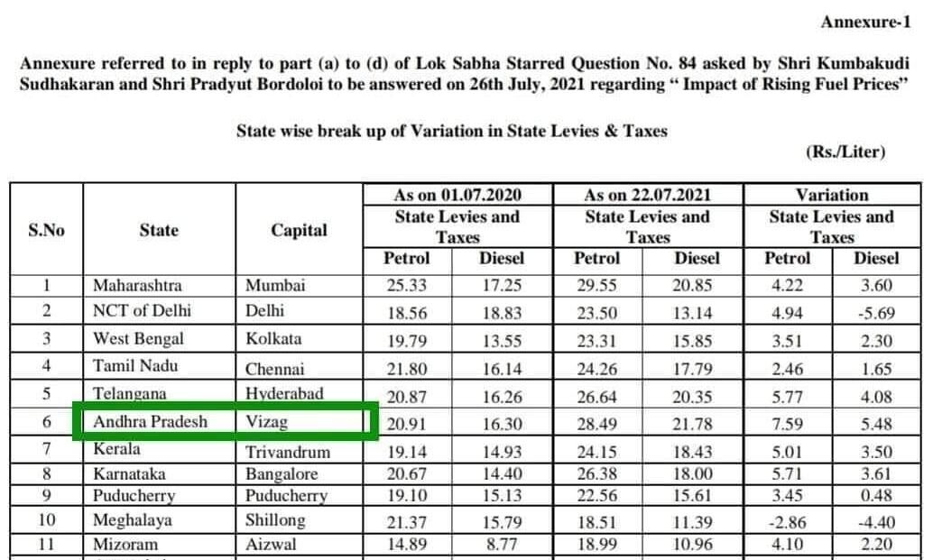 పెరిగిన పెట్రోల్ ధరల ప్రభావం రాష్ట్రాల్లో అంచనా వేశారా అంటూ... ఎంపీ కె .సుధాకరన్ అడిగిన ప్రశ్నకు కేంద్రం సమాధానం ఇచ్చింది. కేంద్రం విడుదల చేసిన రాజధానుల పట్టికలో ఏపీ రాజధానిగా విశాఖను పేర్కొంది. గతంలో ఏపీ రాజధాని అంశం న్యాయపరిధిలో ఉందని కేంద్రం చెప్పింది. న్యాయపరిధిలో ఉన్న అంశాన్ని లోక్సభలో ప్రస్తావించడాన్ని అమరావతి జేఏసీ తప్పుపడుతోంది. తాజాగా ఏపీ మున్సిపల్ శాఖ మంత్రి బొత్స సత్యానారాయణ అమరావతి రైతులతో చర్చలు జరిపేది లేదని..విశాఖకు రాజధానిని తరలిస్తామని స్పష్టం చేశారు. కోర్టు ఆమోదంతోనే ఈ పని చేస్తామన్నారు.