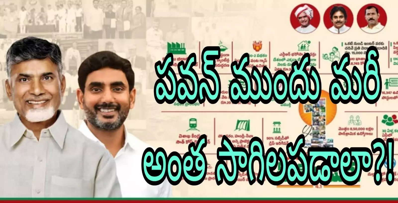 కొద్ది నెలల క్రితం జరిగిన జనసేన ఆవిర్భావ సభలో కూడా పవన్ కళ్యాణ్ మొన్నటి ఎన్నికల్లో తాను నిలబడటమే కాకుండా నలభై ఏళ్ళ చరిత్ర ఉన్న టీడీపీ ని నిలబెట్టానని వ్యాఖ్యానించిన సంగతి తెలిసిందే. పార్టీని డ్యామేజ్ చేసేలా పవన్ కళ్యాణ్ మాట్లాడినా కూడా అటు చంద్రబాబు, ఇటు నారా లోకేష్ లు నోరు తెరిచి దీనిపై స్పందించిన దాఖలాలు లేవు. ఇప్పుడు ఎన్నడూలేని రీతిలో ఏకంగా టీడీపీ పేస్ బుక్ పేజీ హెడర్ లో పవన్ కళ్యాణ్ ఫోటో పెట్టడం టీడీపీ క్యాడర్ కు ఏ మాత్రం రుచించటం లేదు. పోనీ హెడర్ లో ప్రధాని నరేంద్ర మోడీ పెట్టడం సరికాదు అని భావించినా కూటమిలో భాగస్వామిగా ఉన్న బీజేపీ ఏపీ అధ్యక్షురాలు దగ్గుబాటి పురేందేశ్వరి ఫోటో అయినా కూడా పెట్టి ఉండాలి కదా అన్న సందేహాన్ని ఆ పార్టీ నేతలు వ్యక్తం చేస్తున్నారు. ఇది ఇలా ఉంటే ఈ మధ్య ఇస్తున్న ప్రభుత్వ యాడ్స్ లో మాత్రం పవన్ కళ్యాణ్ తో పాటు అయన శాఖకు సంబంధం ఏ మాత్రం సంబంధము లేకపోయినా కూడా నారా లోకేష్ ఫోటో కూడా జత చేస్తున్నారు. ఇది అంతా కూడా అటు ప్రభుత్వంలో...ఇటు పార్టీ నారా లోకేష్ ను నెంబర్ టూ గా ప్రాజెక్ట్ చేసే వ్యవహారం అని పార్టీ నేతలే చెపుతున్నారు.