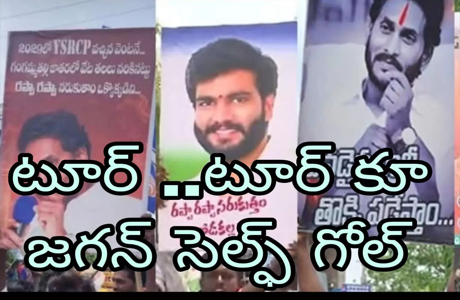 ‘2029 ఎన్నికల్లో వైఎస్ఆర్ సి పీ వచ్చిన వెంటనే గంగమ్మ తల్లి జాతరలో వేట తలలు నరికినట్లు రపా రపా నరుకుతాం ఒక్కొక్కడిని. రాజారెడ్డి రాజ్యాంగం అమలు పల్నాడు నుంచే మొదలు. ఎవడైనా రాని తొక్కి పడేస్తాం. అన్న వస్తాడు. అంతు చూస్తాడు. ’ వంటి నినాదాలు ఉన్న ప్లకార్డులు ప్రదర్శించారు. ఇవే కాదు..ఇంకొన్ని భూతులతో కూడిన నినాదాలు కూడా ఉన్నాయి. ఇవి అన్నీ చుసిన వాళ్ళు జగన్ మోహన్ రెడ్డి ప్రజలకు ఎలాంటి సంకేతం పంపాలి అనుకుంటున్నారో అని కామెంట్స్ చేస్తున్నారు. ఎక్కడైనా ప్రతిపక్ష పార్టీ ప్రభుత్వాన్ని ఇరుకున పెట్టడానికి ప్రయత్నించాలి కానీ..ప్రతి పర్యటనలోనూ ఇలాంటి వాటితో సెల్ఫ్ గోల్ వేసుకునే లీడర్ గా జగన్ మోహన్ రెడ్డి రికార్డు లకు ఎక్కేలా ఉన్నారు అని ఒక సీనియర్ వైసీపీ నేత వ్యాఖ్యానించారు. అయితే ఇలా చేయటం తప్పు అని జగన్ కు చెప్పే సాహసం వైసీపీ లో ఎవరూ చేయరు అనే విషయం తెలిసిందే. జగన్ పర్యటనలకు ఇటీవల కాలంలో పెద్ద ఎత్తున జనాలు వస్తున్నారు. అందుకే ప్రభుత్వం కూడా తాజా పర్యటనపై విషయంలో కూడా పలు ఆంక్షలు పెట్టింది. పోలీసుల ఆంక్షలను కాదని పెద్ద ఎత్తున జనాలు జగన్ కార్యక్రమానికి వచ్చారు. అయితే ఈ వివాదాస్పద ప్లకార్డులతో మొత్తం వ్యవహారం పక్కకు పోయినట్లు అయింది అని వైసీపీ నేతలే అభిప్రాయపడుతున్నారు.