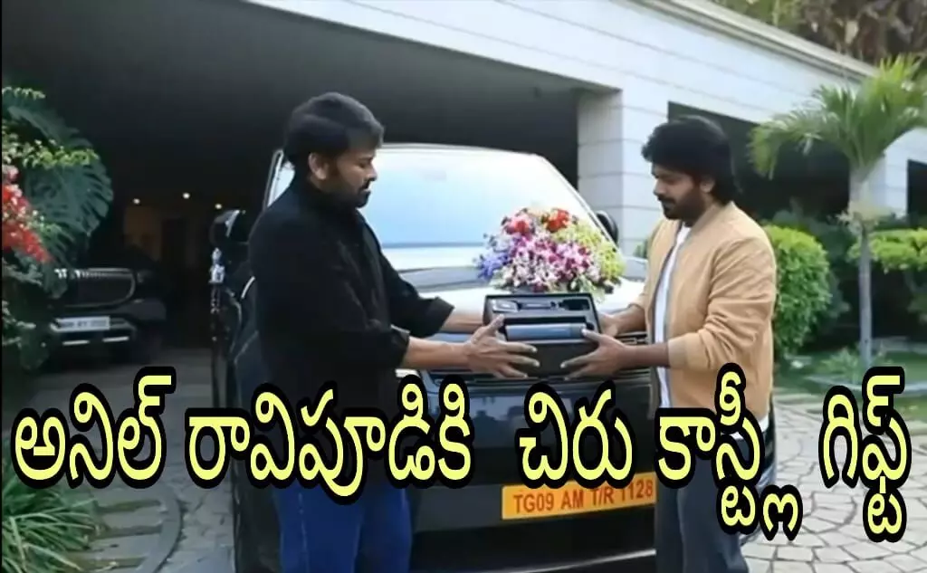 తన కెరీర్ లోనే అత్యధిక వసూళ్లు సాధించిన సినిమాను అందించిన దర్శకుడు అనిల్ రావిపూడికి చిరంజీవి తాజాగా ఒక ఖరీదు అయిన కారు ను బహుకరించారు. అల్ట్రా ప్రీమియర్ రేంజ్ రోవర్ కారు ఇప్పుడు అనిల్ రావిపూడి సొంతం అయింది. ఈ కారు బహుకరించే సందర్భంగా ఇద్దరి మధ్య ఆసక్తికర సంభాషణ చోటు చేసుకుంది. కారు నచ్చిందా అని చిరంజీవి దర్శకుడు అనిల్ రావిపూడిని అడగ్గా...మెగా బహుమతి మహదానందం మనోధైర్యం ధనాధన్ అంటూ అనిల్ రావిపూడి సందడి చేశారు. దర్శకుడు అనిల్ రావిపూడికి...చిరంజీవి కారు గిఫ్ట్ గా ఇచ్చిన ఫోటో లు ఇప్పుడు సోషల్ మీడియా లో వైరల్ గా మారాయి. గత కొంత కాలంగా టాలీవుడ్ లో విజయవంతం అయిన సినిమా దర్శకులు...మ్యూజిక్ డైరెక్టర్లకు కూడా ఖరీదు బహుమతులు అందచేయటం ఒక ట్రెండ్ గా మారింది.