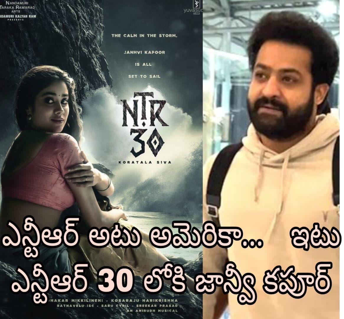 ఎన్టీఆర్ ఫాన్స్ కు ఒకే రోజు రెండు వార్తలు. ఆస్కార్ అవార్డుల వేడుకలో పాల్గొనేందుకు ఎన్టీఆర్ సోమవారం ఉదయం అమెరికా బయలు దేరి వెళ్లారు. ఆస్కార్ అవార్డు ల ప్రకటన కంటే ముందు ఈ హీరో పలు ఇతర కార్యక్రమాల్లో కూడా పాల్గొననున్నారు. అదే సమయంలో హాలీవుడ్ క్రిటిక్స్ అసోసియేషన్ అవార్డు కూడా అందుకుంటారు. ఇది అలా ఉంటే ఎన్టీఆర్ 30 వ సినిమా కు సంబంధించి చిత్ర యూనిట్ సోమవారం నాడు కీలక ప్రకటన చేసింది. జూనియర్ ఎన్టీఆర్, కొరటాల శివ కాంబినేషన్ లో వస్తున్న ఈ సినిమాలో హీరోయిన్ గా బాలీవుడ్ నటి, శ్రీదేవి కుమార్తె జాన్వీ కపూర్ నటించనున్నారు. జాన్వీ కపూర్ పుట్టిన రోజు సందర్భంగా ఆమె పోస్టర్ మాత్రం విడుదల చేశారు. జూనియర్ ఎన్టీఆర్ ఆస్కార్ అవార్డ్స్ నుండి తిరిగి వచ్చాక మార్చ్ 18 న సినిమా పూజా కార్యక్రమం జరిగే అవకాశం ఉంది. జాన్వీ కపూర్ ఎన్టీఆర్ 30 పోస్టర్ లో అచ్చమయిన తెలుగు అమ్మాయిలా కనిపించింది.