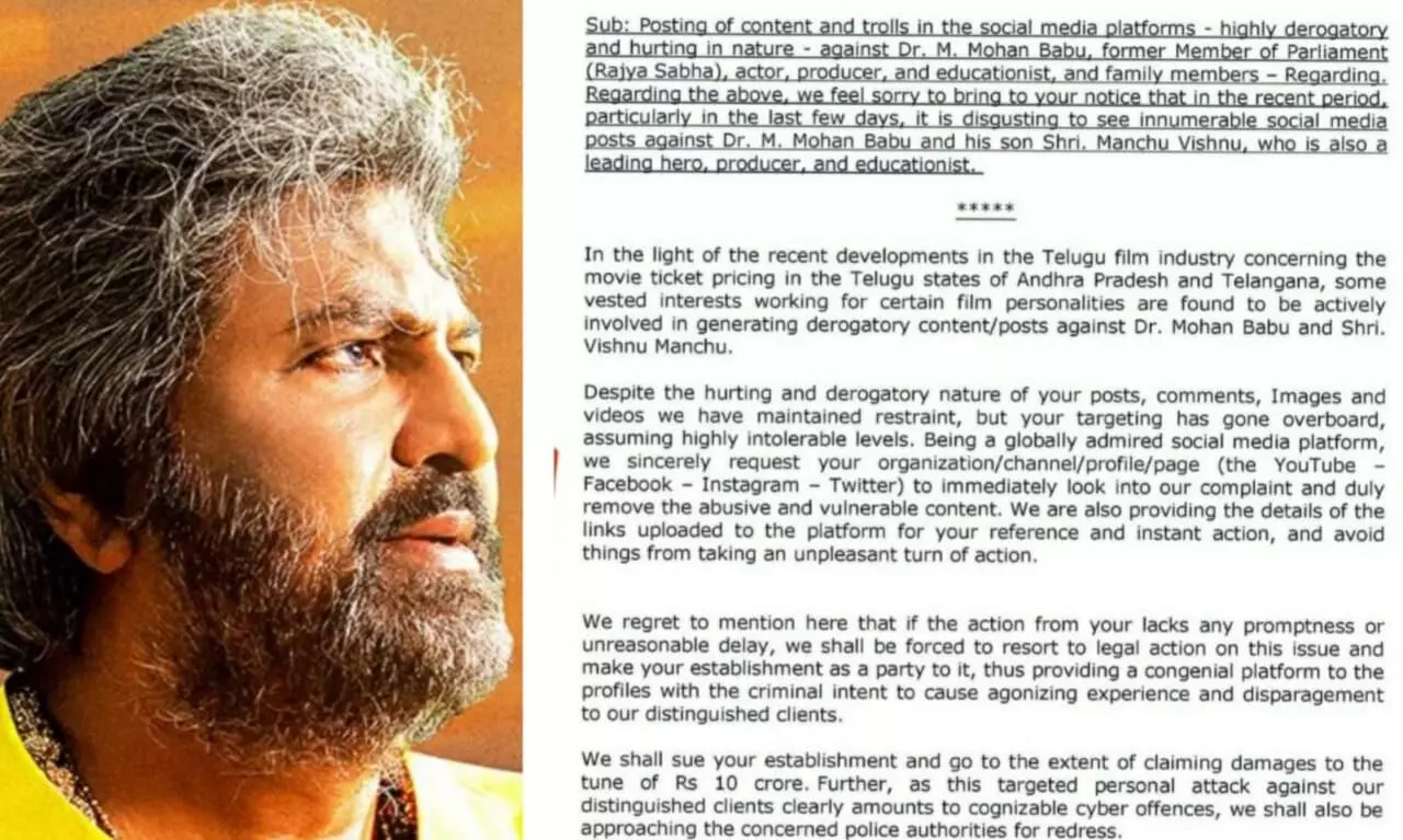 మోహన్ బాబుపై ట్రోల్స్...సోషల్ మీడియా సంస్థలకు ఫిర్యాదు