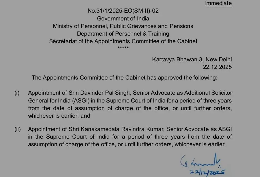 TDP senior leader and former MP Kanakamedala Ravindra Kumar has been appointed to a key position at the Centre. The Central Government has appointed him as an Additional Solicitor General (ASG) in the Supreme Court. In this regard, the Central Government issued a notification on Tuesday. Along with Kanakamedala Ravindra Kumar, Davinder Pal Singh has also been appointed to this post. As per the decision of the Appointments Committee of the Cabinet, orders were issued appointing two new persons to the posts of Additional Solicitor General. They will serve in this position for a term of three years.