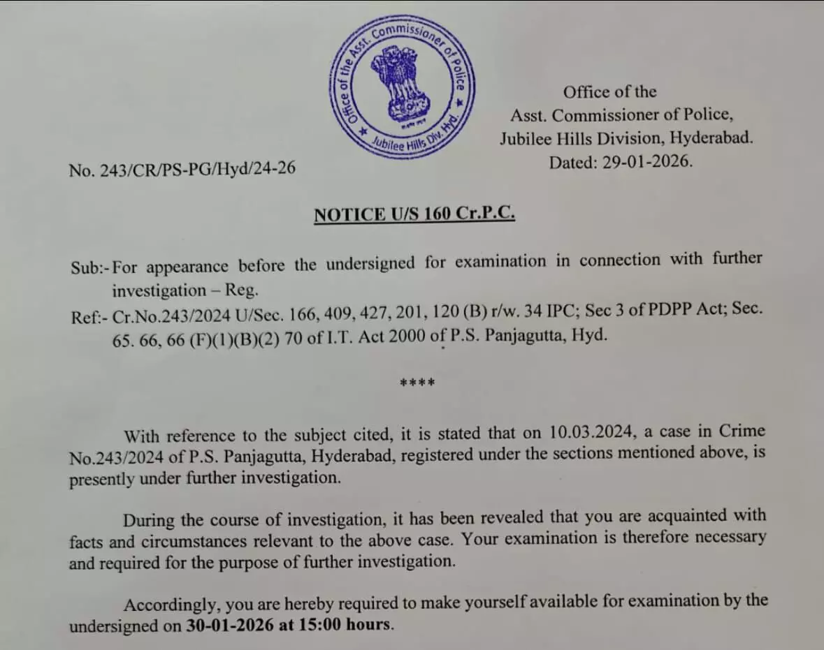 SIT Notice to KCR in Phone Tapping Probe