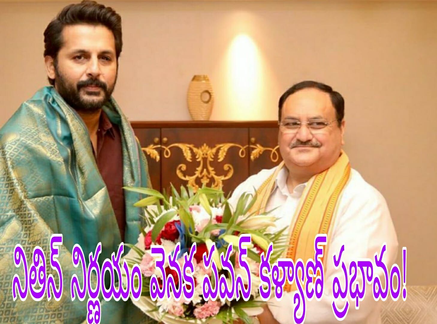 నితిన్ నిర్ణయం వెనక..అంటే బిజెపి వైపు మొగ్గుచూపాలనే అంశంలో జనసేన అధినేత పవన్ కళ్యాణ్ ప్రభావం కూడా ఉంటుందనే చర్చ సాగుతోంది. టాలీవుడ్ హీరో నితిన్ జనసేన అధినేత పవన్ కళ్యాణ్ కు వీరాభిమాని అన్న విషయం తెలిసిందే. ప్రస్తుతం బిజెపి, జనసేన ఏపీలో పొత్తులో కొనసాగుతున్నాయి. భవిష్యత్ లోనూ కొనసాగే అవకాశం ఉందనే అభిప్రాయం ఉంది. నితిన్ తండ్రి సుధాకర్ రెడ్డి టాలీవుడ్ నిర్మాత, డిస్ట్రిబ్యూటర్ కూడా. ఇప్పుడున్న పరిస్థితుల్లో సినిమా హీరోలు చెపితే ఓటర్లు ఆయా పార్టీలకు ఓట్లు వేస్తారా? వీరి ప్రభావం ఏ మేరకు ఉంటుందనే అంశంపై రకరకాల అభిప్రాయాలు ఉన్నాయి. అటెన్షన్ డ్రా చేయటానికి..సభలకు జనాలను ఆకట్టుకోవటానికి మాత్రం వీళ్లు ఖచ్చితంగా ఉపయోగపడతారని చెప్పొచ్చు.